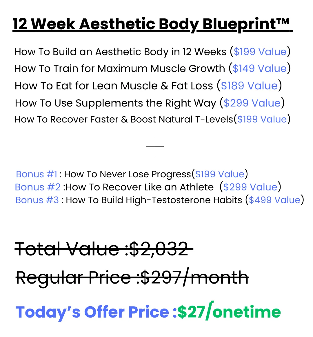 The 12 Week Aesthetic Blueprint+ 3 Elite Bonuses ( Today's Offer Price)